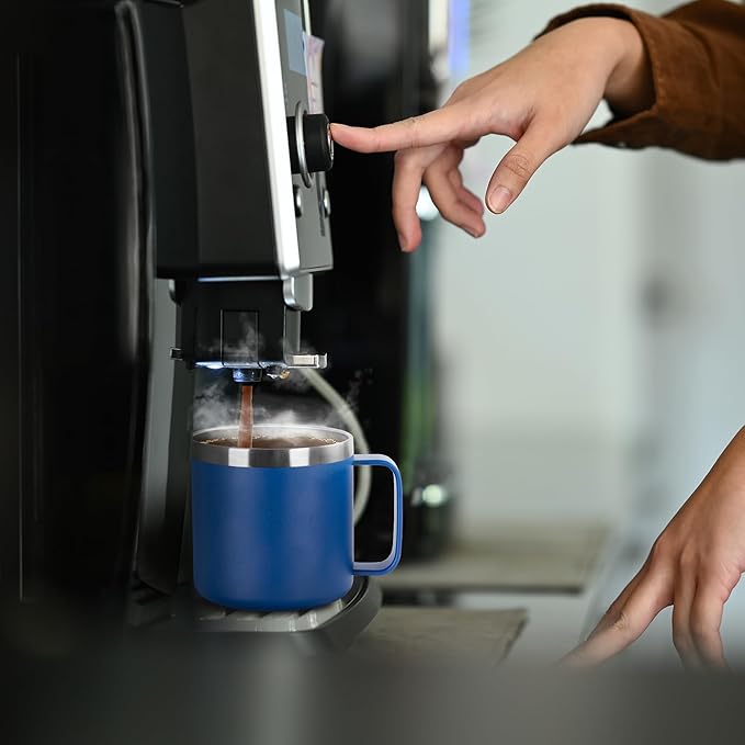 - Stainless Steel Coffee Mug: The 14oz coffee mug is ideal for home use, outdoor activities,camping, travel or work.Carry this travel coffee mug with you wherever you go
