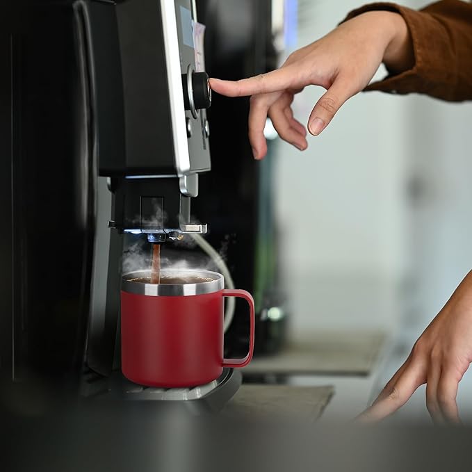 VEGOND 14 oz Insulated Coffee Mug with Handle, Stainless Steel Travel Coffee Mug with Lid, Double Wall Vacuum Metal Coffee Cup, Coffee Tumbler Powder Coated, Red 1 Pack