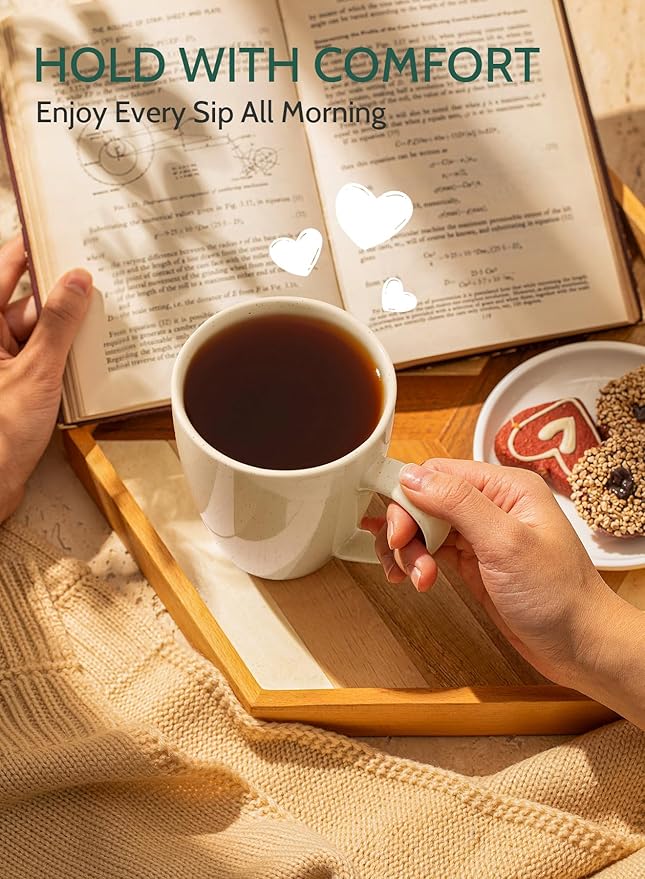 - ENJOY YOUR DRINK WITH EASE: Our coffee mugs redefine comfort with a spacious design and a large handle, ensuring a cozy grip. Savor the enhanced taste of your tea or coffee as the mug sits comfortably in your hands. Crafted with ergonomic precision, our mugs offer a stylish and secure grip, the wide mouth is perfect for indulging in hot lattes, complemented by a large handle that holds 16 ounces of goodness. Choose ease and style for every sip.