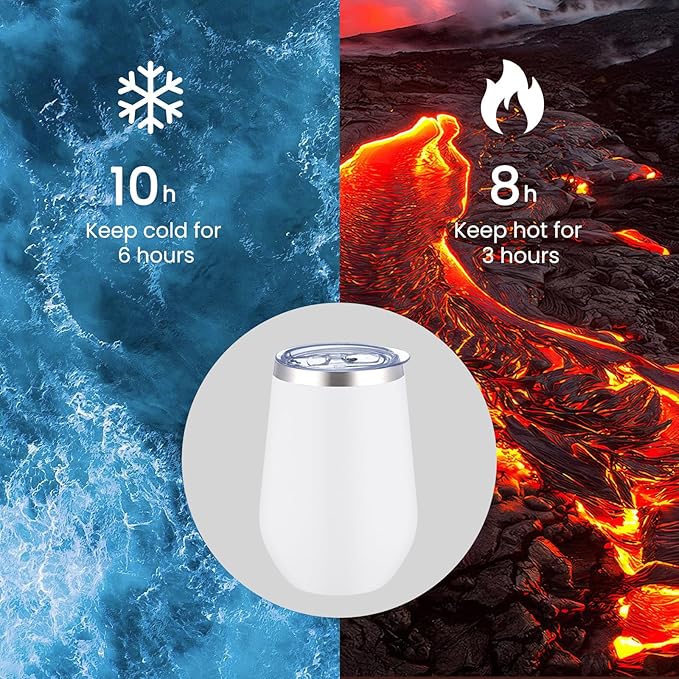 - [Thermal Insulation & Included Straw:]The double-wall wine tumbler uses a double-layer vacuum insulation process to maintain your drink's temperature for an extended period. It keeps your water, wine, or cocktail icy cold for up to 10 hours and your coffee or tea hot for over 8 hours. Additionally, the straw hole at the top of the cup with a slider and just because of the included straws, which make your drinking more convenient no matter leisure or occupied