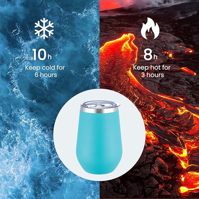 - [Thermal Insulation & Included Straw:]The double-wall wine tumbler uses a double-layer vacuum insulation process to maintain your drink's temperature for an extended period. It keeps your water, wine, or cocktail icy cold for up to 10 hours and your coffee or tea hot for over 8 hours. Additionally, the straw hole at the top of the cup with a slider and just because of the included straws, which make your drinking more convenient no matter leisure or occupied