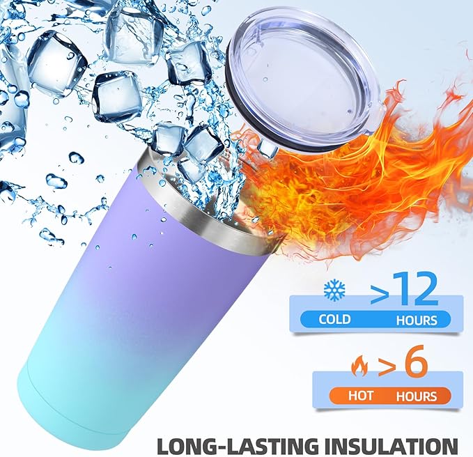 Volhoply 20oz Stainless Steel Tumbler with Lid and Straw Bulk 8 Pack,Double Wall Insulated Travel Iced Coffee Mug Fits Cup holder,Powder Coated Cups for Cold Drinks,Christmas Gifts(Purple Bule,8 Set)