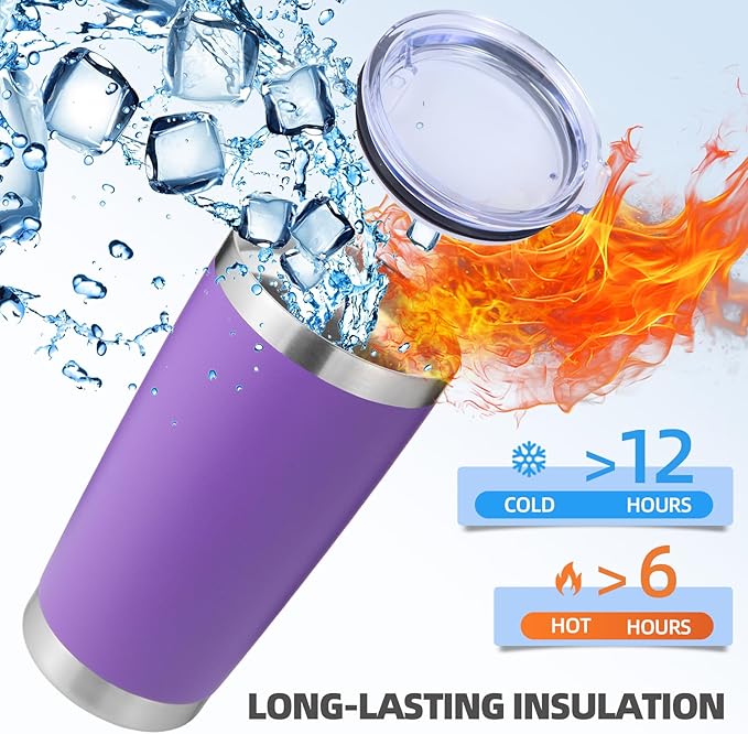Volhoply 20oz Stainless Steel Tumbler with Lid and Straw Bulk 12 Pack,Double Wall Insulated Travel Iced Coffee Mug Fits Cup holder,Powder Coated Cups for Hot/Cold Drinks,Christmas Gifts(Purple,12 Set)