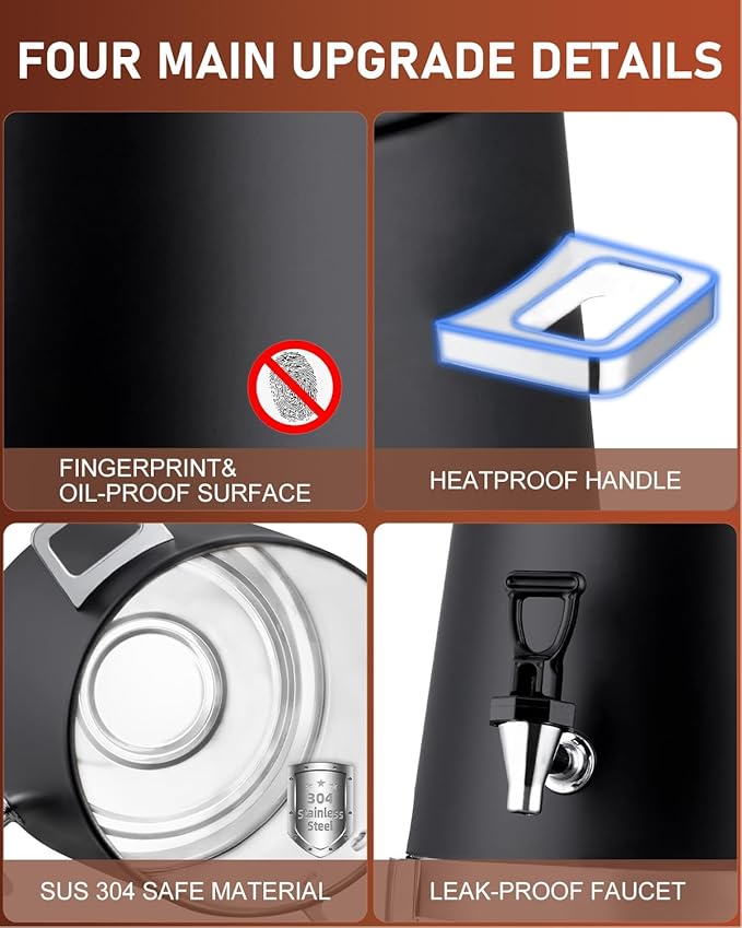 - HOT & COLD DUAL-USE: This large drink dispensers for parties can handle beverages ranging from -40°F to 392°F, whether it's cold fruit juice or hot coffee, thishot beverage dispenser can handle it all.