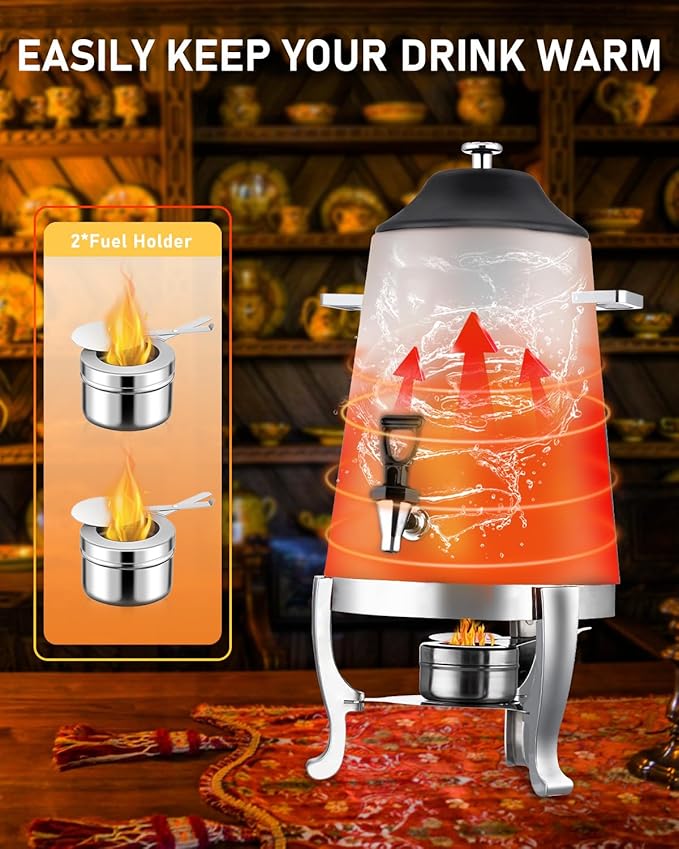 - CONTINUOUS HEATING: : Simply light the FUEL HOLDER on the base of the hot water dispenser with stand to quickly heat your hot drinks, keeping them warm wherever and whenever you need.