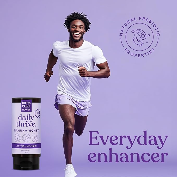 - Daily Thrive UMF 15+ Mānuka Honey: A prebiotic-powered enhancer for warm drinks, skin routines, and healthy meals. Enjoy a spoonful daily for a boost. Feel 100%, live 100%!