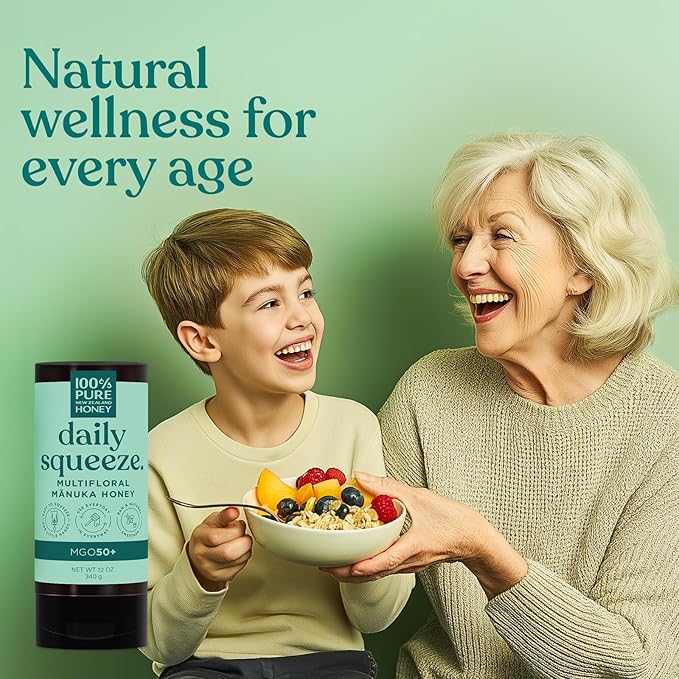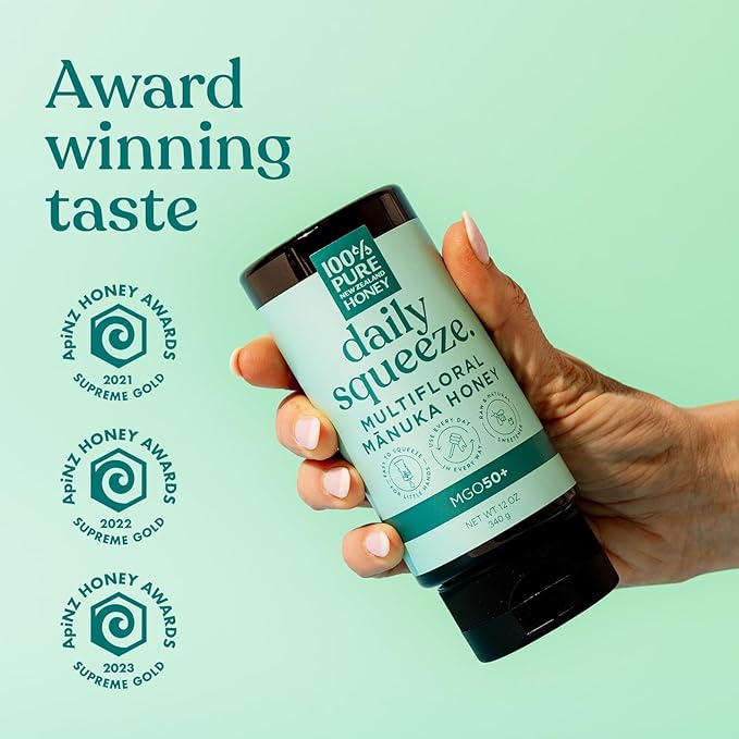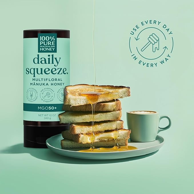 - Daily Squeeze MGO 50+ Mānuka Honey: A daily wholefood sweetener for hot/cold drinks, yoghurt, toast, oats, pancakes, and baking. Feel 100%, live 100%!