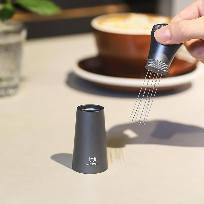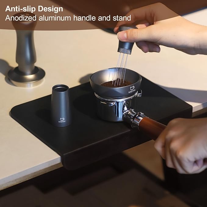 - 【Make better expresso】 Our 7-pin espresso whisk tool is used by professional baristas and home baristas to stir coffee powder. This espresso tool distributes grinds evenly, maximizing extraction and minimizing channeling.【PACKAGE INCLUDES】1 * WDT Espresso Distribution Tool with Stand, 14 * food-grade stainless steel needles, 1 * Needles Storage Tube, 1 * User Manual