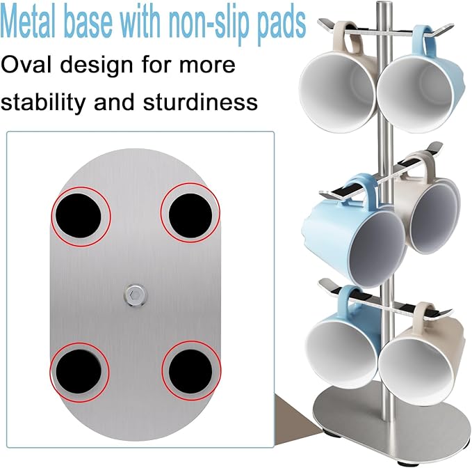 - Protective Pad Design - Each branch of the coffee cup holder has Protective pad to protect the cups from scratches. The 4 non-slip pads on the bottom are designed to help achieve good stability and prevent scratches on the countertop