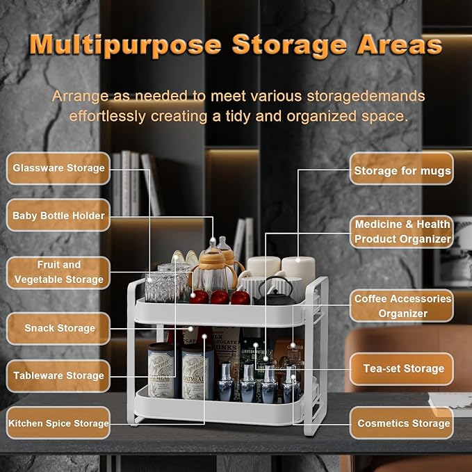 - Outstanding Coffee Bar Organizer: The PXPUIQ 2-Tier Mug Holder Rack is an exceptional coffee station organizer that effectively meets all your needs for organizing your coffee bar. This multifunctional coffee mug holder provides ample space for coffee bar accessories, ensuring a neat arrangement of coffee mugs and glassware. Transform your coffee time into a stylish experience with this efficient cup drying rack.