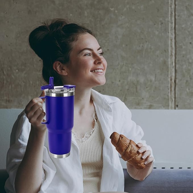 - Tumbler with handle:The welded handle provides a firm grip on your drink. It's large enough for anyone to hold easily, allowing you to carry the tumbler around and take a sip with one hand.