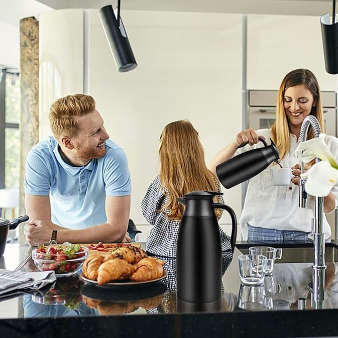 68oz Thermal Coffee Carafe, 2 Pack Airpot Insulated Coffee Urns Stainless Steel Vacuum Thermal Pot Dispenser for Coffee, Hot Water, Tea, Hot Beverage - Keep 12 Hours Hot, 24 Hours Cold (Black)