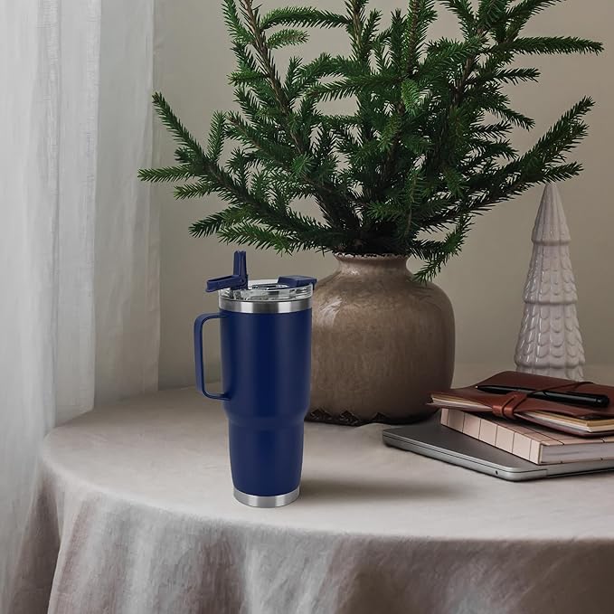 - Tumbler with handle:The welded handle provides a firm grip on your drink. It's large enough for anyone to hold easily, allowing you to carry the tumbler around and take a sip with one hand.