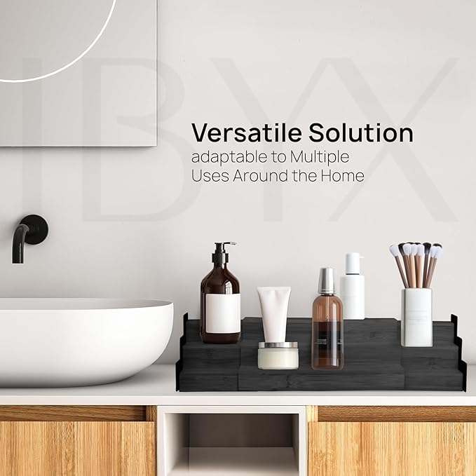 Ibyx Premium 3-Tier Spice Rack Organizer for Cabinet - Expandable Bamboo Spice Storage - Non-Skid Countertop Step Spice Shelf - Great for Kitchen Cabinet, Countertop, Cupboard, Pantry (Black)