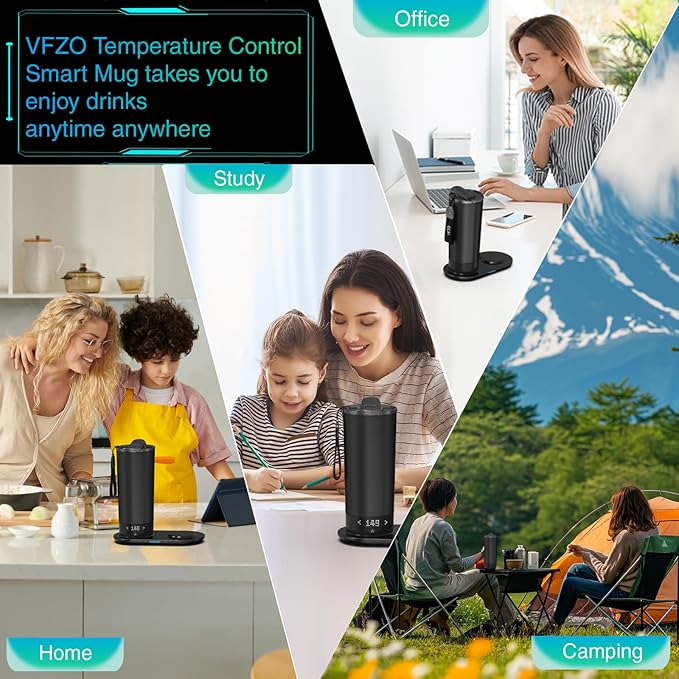 - The VFZO smart coffee mug adopts professional heating technology.VFZO self heating coffee mug - Durable Battery (4000mAh) LED real-time temperature display settings.Heated coffee mug not only heats up beverages and keep the beverage in a constant temperature state for 4-10 hours ,but also has the function of charging your phone, allowing you to enjoy the high-quality life brought by technology at any time