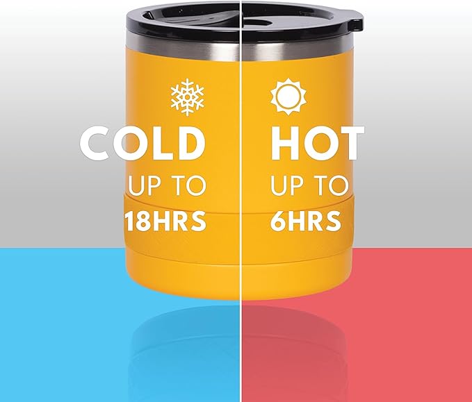 Elemental Recess Lowball Tumbler, 10oz Triple Wall Stainless Steel Cup with Non-Shattered Tritan Lid, Insulated Whiskey Glass, Insulated Coffee Tumbler Mug for Hot & Cold Drinks - Citrus