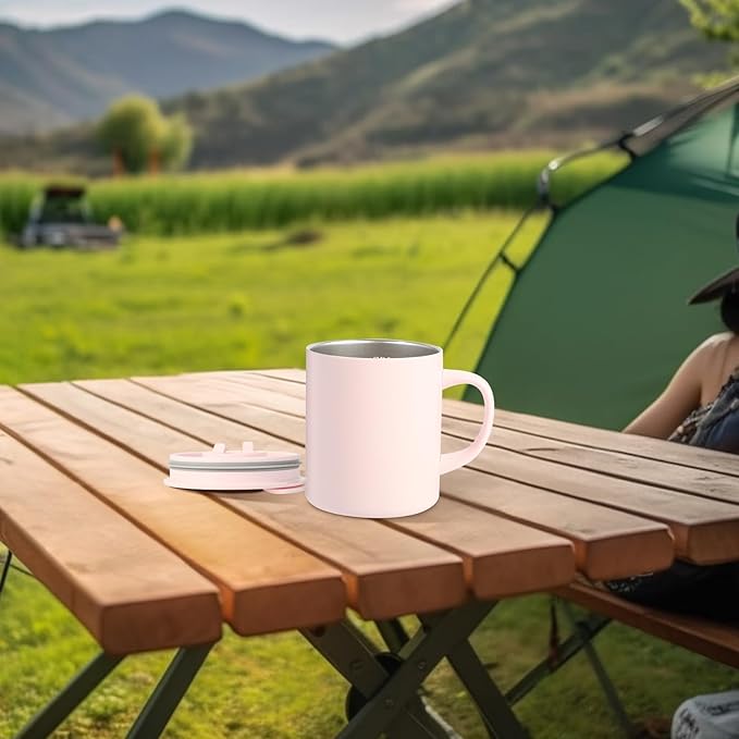 12oz Coffee Mug,Insulated Camping Mug with Lid,Double Wall Stainless Steel Travel Coffee Cup with Handle, Vacuum Reusable Coffee Tumbler Cup for Home, Office, Camping - Pink