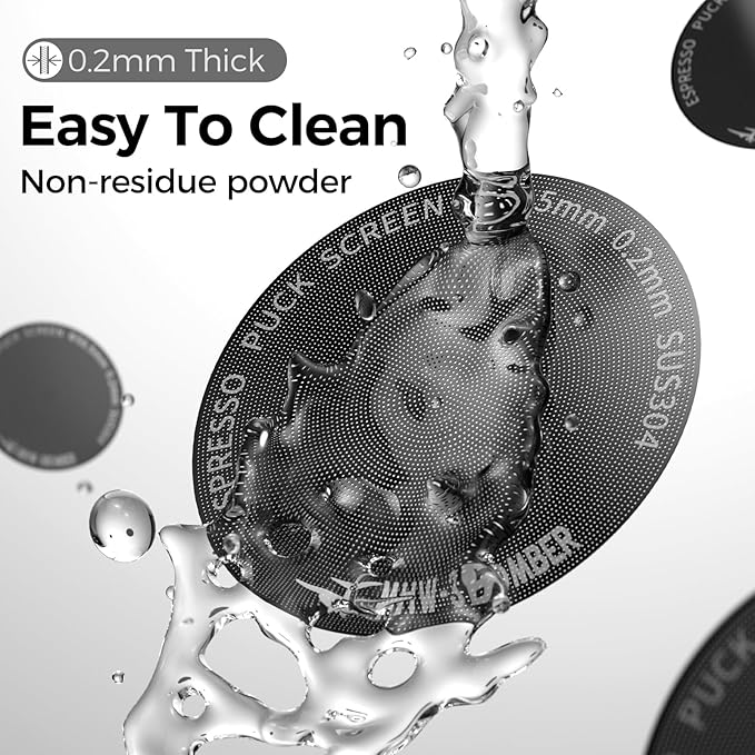 - 0.2mm Thickness: Sets a new standard for espresso puck screen, offering a thinner and more precise option compared to the previous 1.7mm version. It is thinner than the normal espresso puck screens, so you don't have to worry about deliberately reducing the amount of grounds.