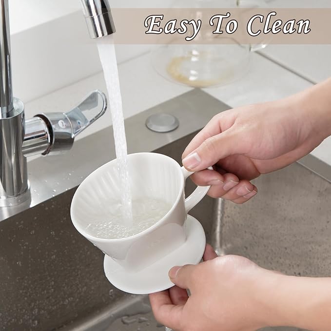 - Durable & Heat-Resistant Materials: Ceramic pour over coffee dripper is made from food-grade, BPA-free ceramic that retains heat for consistent brewing and resists cracks, stains, or odors over time.