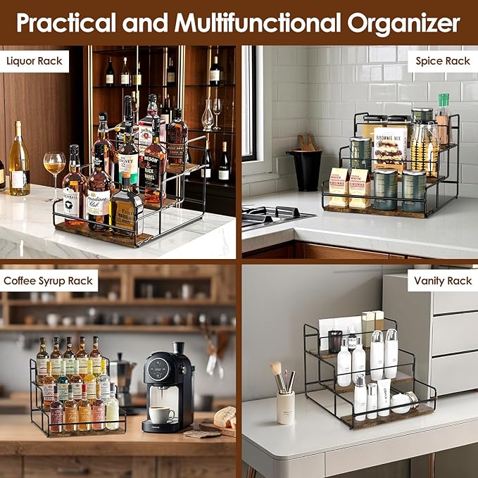 - Multiple Uses: The countertop bottle rack has a wide range of applications and can be used to organize liquor bottles, coffee syrups, vinegar, olive oil, salad dressings and many other kitchen condiment containers. It is suitable for many scenarios, such as kitchen, dining room, bar, coffee bar, cabinet and so on.