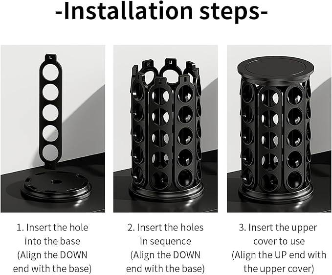 - 【Dimensions】- This convenient space-saving carousel stands at just 13 inches in height and 7.5 inches in diameter. It occupies minimal space, fitting perfectly beside your coffee maker