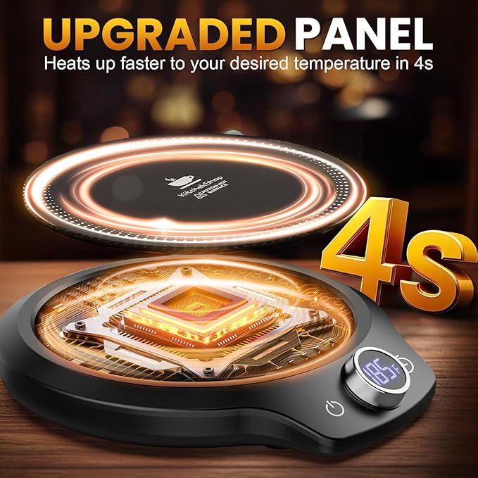 - 【Smart Gravity Sensor Technology】Our coffee mug heater adopts advanced intelligent gravity sensor technology to automatically detect the placement status of the cup. When the cup is picked up, the mug warmer will automatically pause; when the cup is put back, the coffee mug warmer will immediately resume heating. This effectively prevents dry burning and prolongs the service life of the device