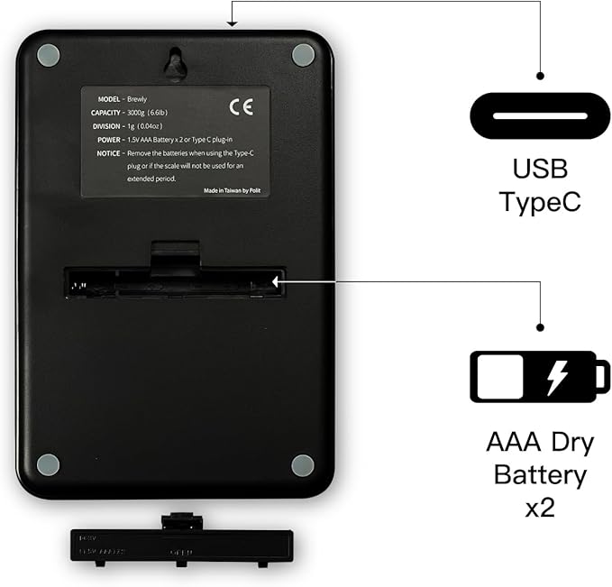 - Special Feature : Dual Power Options (USB-C or Battery), Dual Timer Modes (Count-up & countdown), Milk & Water ml Modes, Triple-Range Auto Precision (0.1g, 0.5g, and 1g for different weight ranges), Ultra-Slim & Travel-Ready Dual Power Options (USB-C or Battery), Dual Timer Modes (Count-up & countdown), Milk & Water ml Modes, Triple-Range Auto Preci… See more
