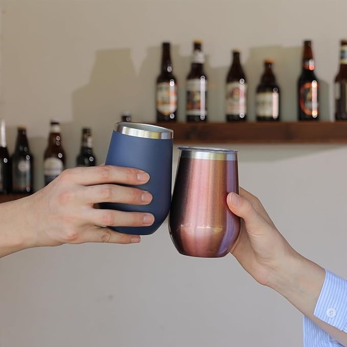 - [Package included:]1*12oz wine tumbler,1*splash proof cover with hole, 1*unbreakable steel straw, 1*straw brush,and 1*beautiful box.YOUR 100% SATISFACTION IS OUR TOP NOTCH! we walk the extra mile to ensure our customers' complete satisfaction. If you are not positively thrilled with our tumblers, just let us know and we will try to give you an satisfied reply