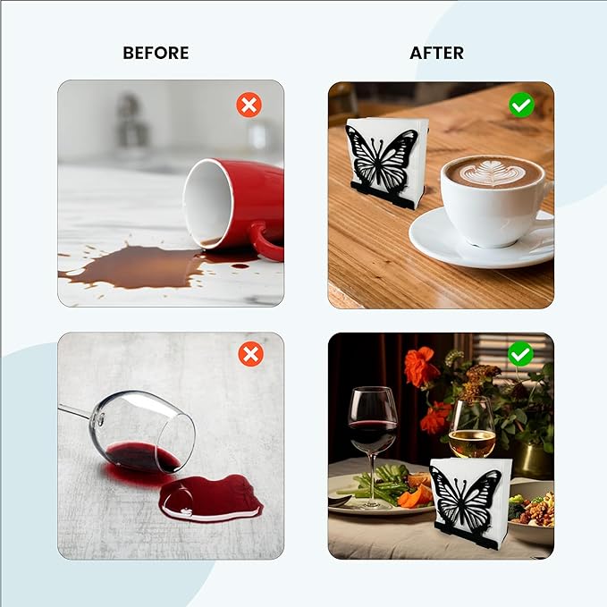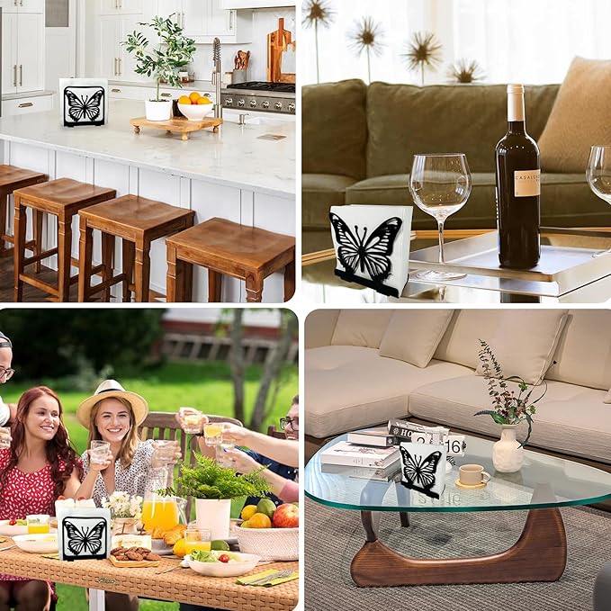 Butterfly Napkin Holder Set – 2 Pack Metal Stand for Everyday & Cocktail Napkins | Modern Black Decorative Coffee Filter Holder for Kitchen, Coffee Bar, Party, Dining Table & Gift