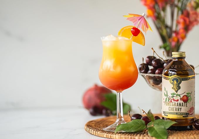 - PREMIUM POMEGRANATE CHERRY SYRUP: Portland Syrups Pomegranate Cherry Syrup is a premium concentrate that combines the tangy sweetness of pomegranate with the rich flavor of cherries. Perfect for creating refreshing sodas, cocktails, mocktails, or adding a unique twist to your favorite beverages.