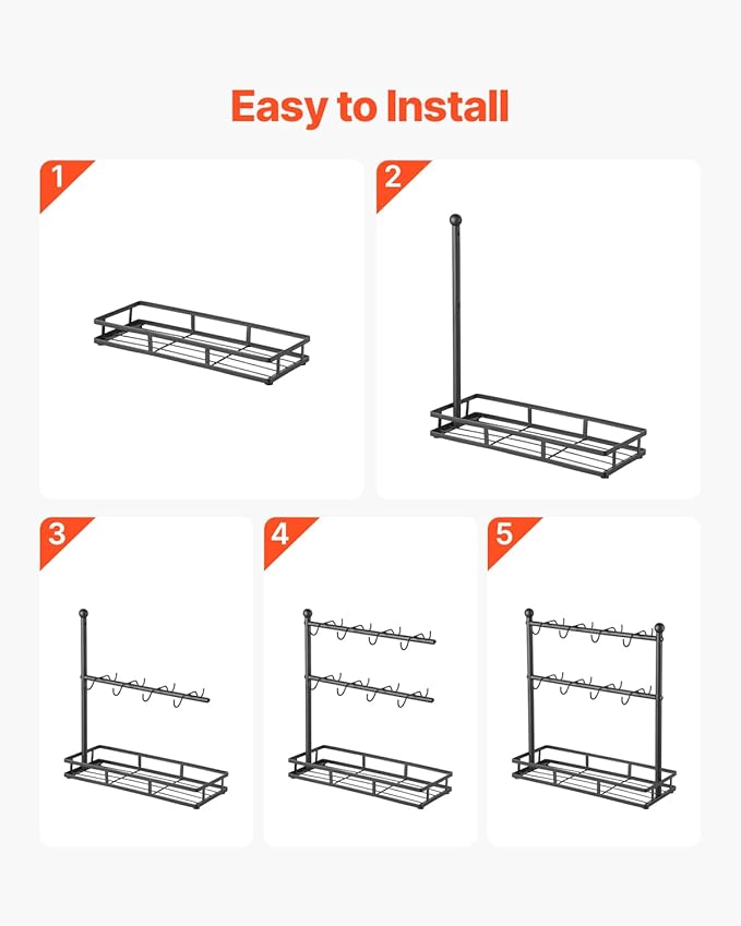 - Durable & Stable: Made from quality carbon steel, the mug rack offers strong load-bearing capacity, is resistant to deformation, and is both sturdy and durable. The metal surface is smooth to prevent scratches