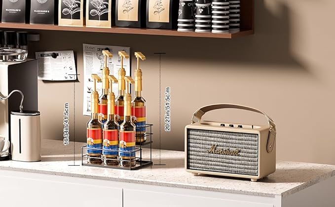 - ·【Versatile and Easy to Maintain】🏠- Beyond coffee syrups, use this rack to neatly store cooking spices, condiments, mugs, or decorative items. The smooth metal finish makes cleaning a breeze with just a damp cloth.