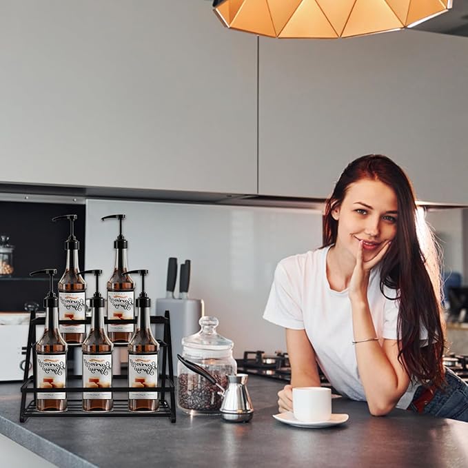 - This coffee syrup holders are made of high quality sturdy metal, the thickened iron frame ensures firmness, stronger bearing capacity, flat and smooth surface, water-resistant corrosion, and easy to clean.