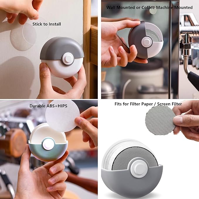 Coffee Filter Paper Holder with Dustproof Cover Coffee Filter Storage Container Filter Paper Box (Round Espresso Filter Holder)