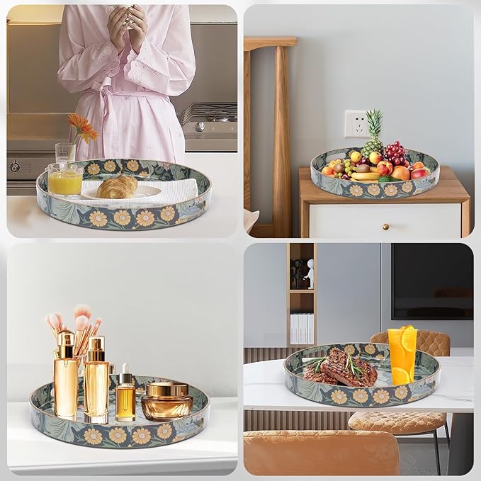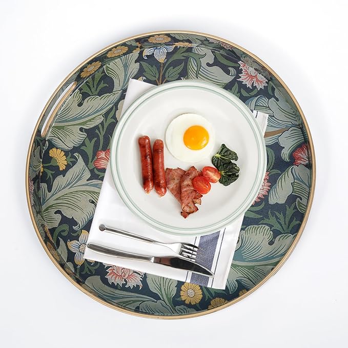 - πΌγ Preferred material γ This tea trays for serving made of thickened material, it is plastic, with smooth surface and convenient cleaning, round tray with vintage printing design
