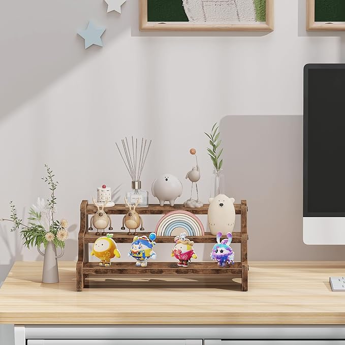 - VINTAGE APPEARANCE: Rustic and aesthetic wood grain, simple and elegant dark brown adds a vintage rustic feel to your home. This table top display shelf is suitable for many places in your home.
