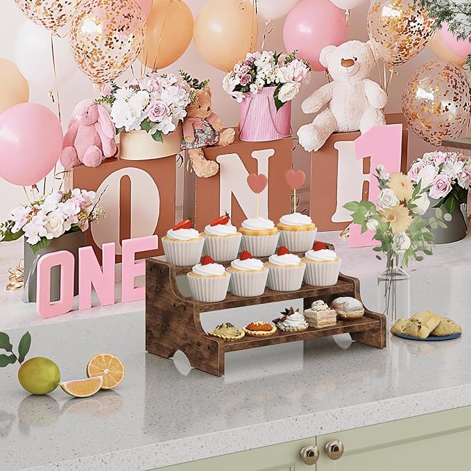 - VERSATILE STORAGE: The 3-step display stand is perfect for organizing and displaying a variety of items. Use it to showcase your collection of figurines in a cupboard, display makeup on your dresser, arrange cupcakes on the dining table, or store spice bottles, jars, seasonings, and baking supplies in the kitchen pantry or cabinet.