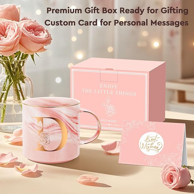 - Personalized Gifts for Women:Handcrafted with premium biodegradable clay & zero lead/cadmium, and with premium marble glaze & gold foil accents creates,this 12oz ceramic coffee mug customized coffee cup combines safety with sophistication. "Her initials in gold" design becomes cherished family heirloom,Choose from 26 alphabet letters to create truly Birthday Gifts, Christmas gifts,Valentines Day Gifts, Mothers Day Gifts.