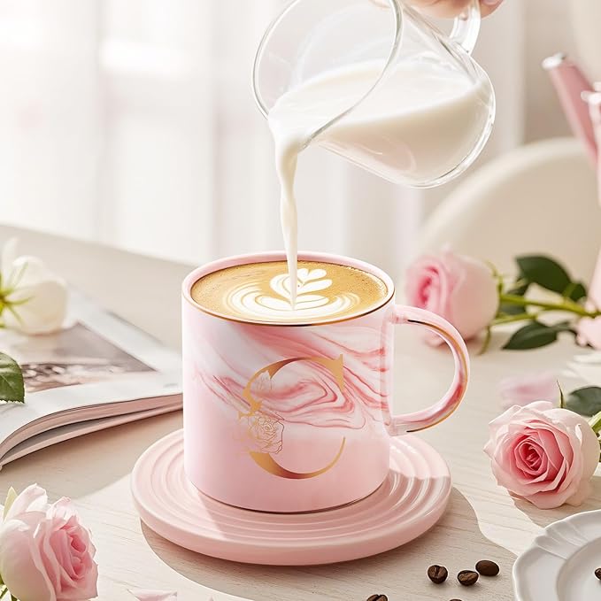 - Personalized Gifts for Women:Handcrafted with premium biodegradable clay & zero lead/cadmium, and with premium marble glaze & gold foil accents creates,this 12oz ceramic coffee mug customized coffee cup combines safety with sophistication. "Her initials in gold" design becomes cherished family heirloom,Choose from 26 alphabet letters to create truly Birthday Gifts, Christmas gifts,Valentines Day Gifts, Mothers Day Gifts.