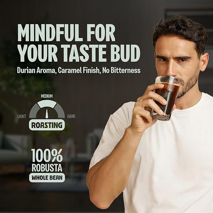 - Exotic Durian, Honey & Caramel Notes Expect a full-bodied cup with a soft durian aroma, light honey sweetness, and a lingering caramel finish. Medium roast preserves complexity without bitterness – smooth enough to drink black or with milk.