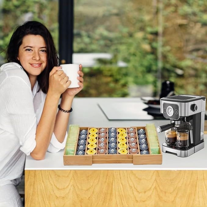 K Cup Holder Bamboo Coffee Pod Holder Drawer Organizer, Expandable K Cup Pod Storage Tea Bag Storage for Coffee Station Home Office and Kitchen