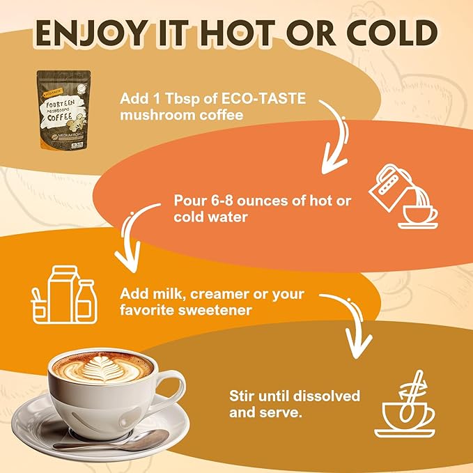 - Ready in Seconds: Simply add one level teaspoon to 4-6 oz of water, stir, and enjoy. You can also mix it into your favorite beverages. Note that mushroom extracts have a slight bitterness, so feel free to add milk, honey, or other sweeteners to suit your taste.