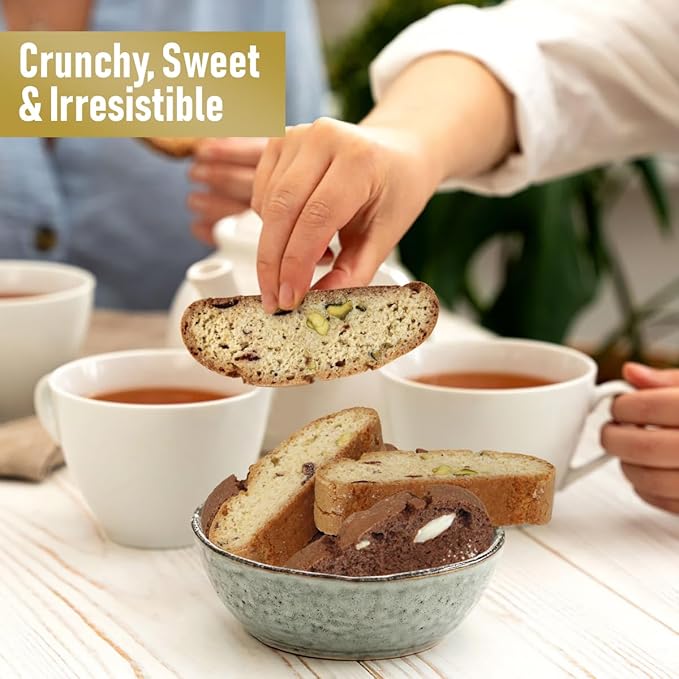 - Perfect Pairing for Coffee & Tea: Crafted for indulgent pairings, these cookies shine alongside coffee, espresso, or tea. Add a touch of class to your daily routine or dessert spread with biscotti that deliver taste, texture, and tradition.