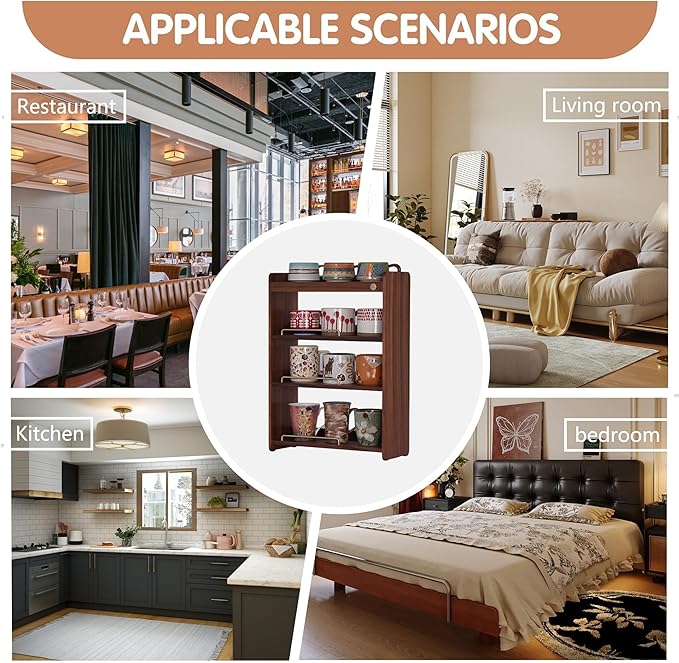 - 4 Tier Solid Wooden Cup Holder: This Multi-tier Wooden Cup Holder Size is: 20*21*6inch. It is the perfect storage tool for your kitchen, it can organize and store your cups efficiently.