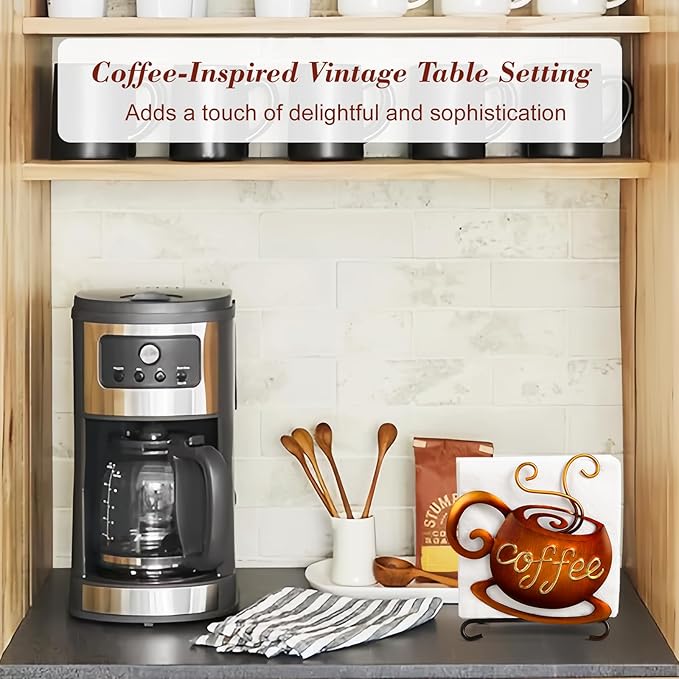 - 3D Craftsmanship & Versatile Use - Each coffee cup pattern is carefully hand-painted and 3D crafted by our experienced craftsmen in premium metal. The robust 3D design ensures it won’t bend or warp, even with frequent use. Beyond beautifully organizing napkins, its clever design doubles as a handy coffee filter holder, keeping your coffee accessories tidy. Also perfect for stashing memos, letters, small notebooks, letters, etc.