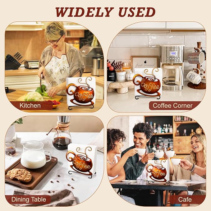- Fit For Any Occasions - Coffee decor is a great way to transform your morning routine into a delightful experience. This coffee napkin holder is a work of art in the coffee shop and an ornament at home, making it compatible with a variety of occasions. It is suitable for a wide range of occasions such as kitchen, coffee bar, dinning tables, nightstands, office desk, parties, picnics, and cafe.