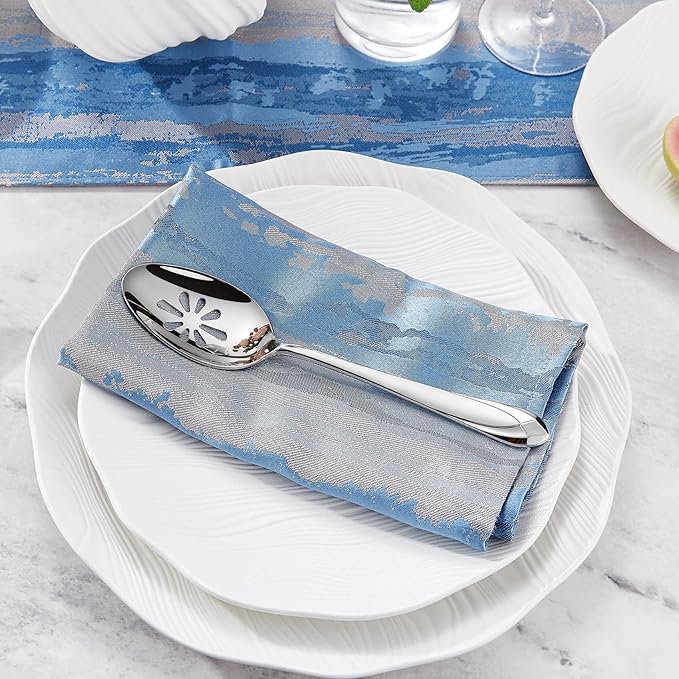 KEAWELL Premium Astra 4-Piece 9 inch Spoon Set – Mirror-Finished 18/10 Stainless Steel with Diamond-Faceted Handles Dishwasher Safe for Modern Dining (4, Serving Spoons and Slotted Spoons)