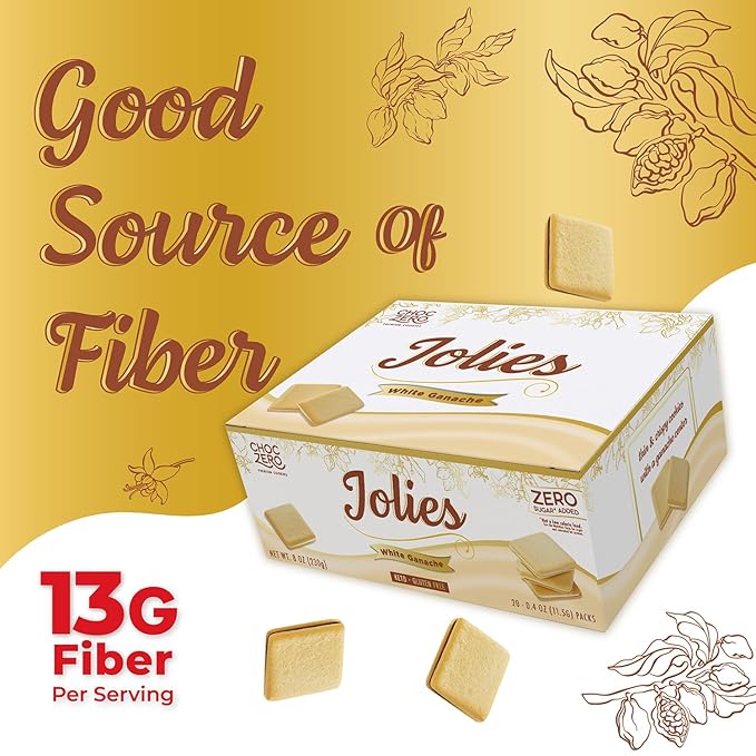 - 13g of prebiotic fiber per 3 cookies: indluge with ChocZero Dark Chocolate Jolies and feel satisfied for longer