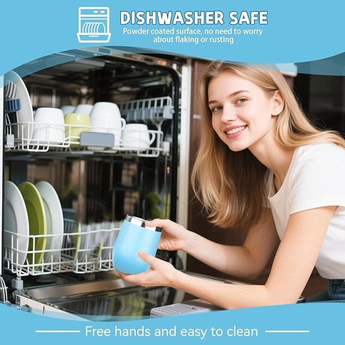 - BPA-free Lids and Straws: The camping wine glasses come with BPA-free lids and additional sealing rings. You don't have to worry about spills when drinking coffee, milk, or juice. The wide-mouth design makes drinking and cleaning more convenient and is safe for dishwasher use. However, to better protect the coating, hand washing is recommended. Additionally, the drinking hole at the top makes drinking more convenient.