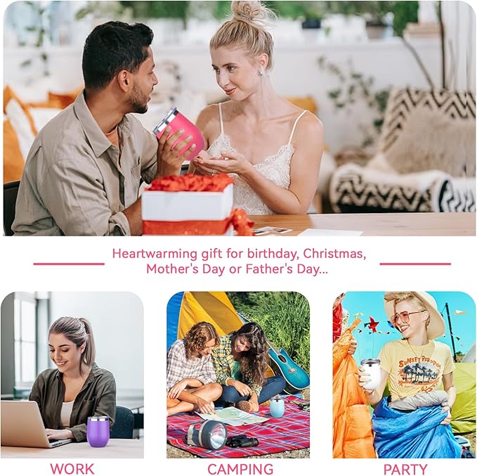 - Suitable for various Occasions: Whether you're at home, in the office, at the beach, or at a party, our wine tumbler with lid are perfectly suited for enjoying coffee, tea, juice, cocktails, and other beverages. Insulated wine tumblers also make ideal gifts for birthdays, holidays, weddings, and other occasions, perfect for friends, family, and colleagues.